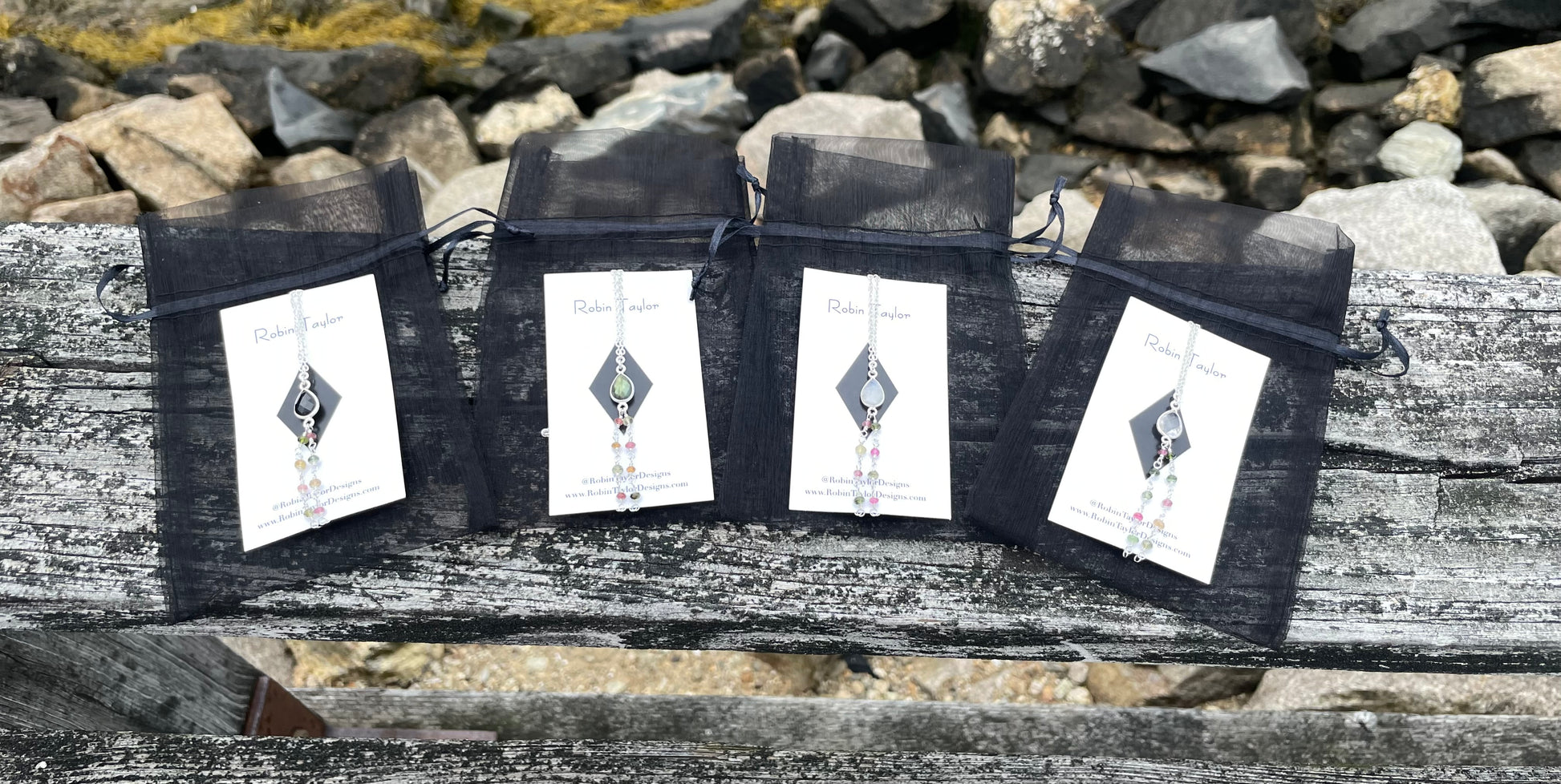 Black Spinel teardrop sits center stage to this beautifully hand wrapped silver hand chain with 4mm watermelon tourmaline gems. Hand wire wrapped with sterling silver wire and finished with sterling silver chain & findings. The black spinel center piece adds a bold touch while the watermelon tourmaline adds a pop of color.