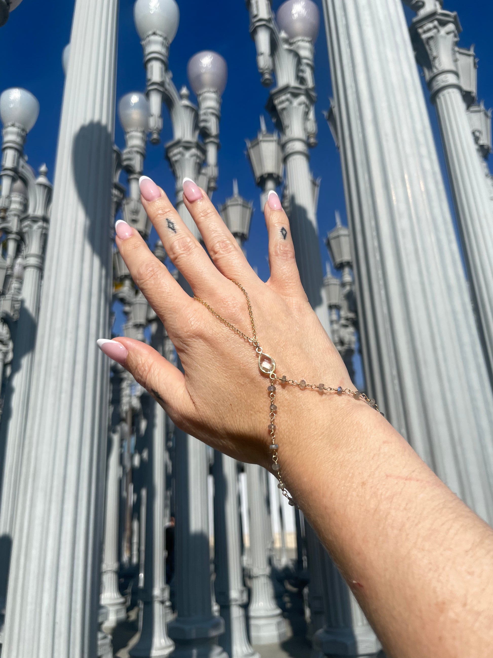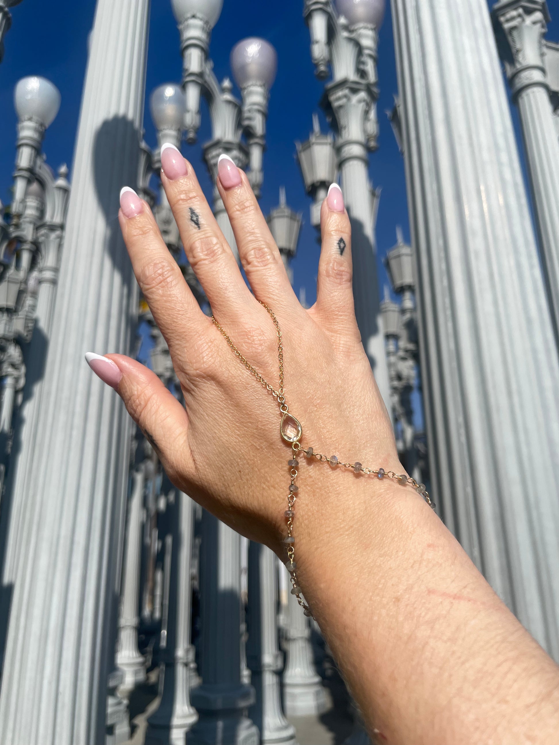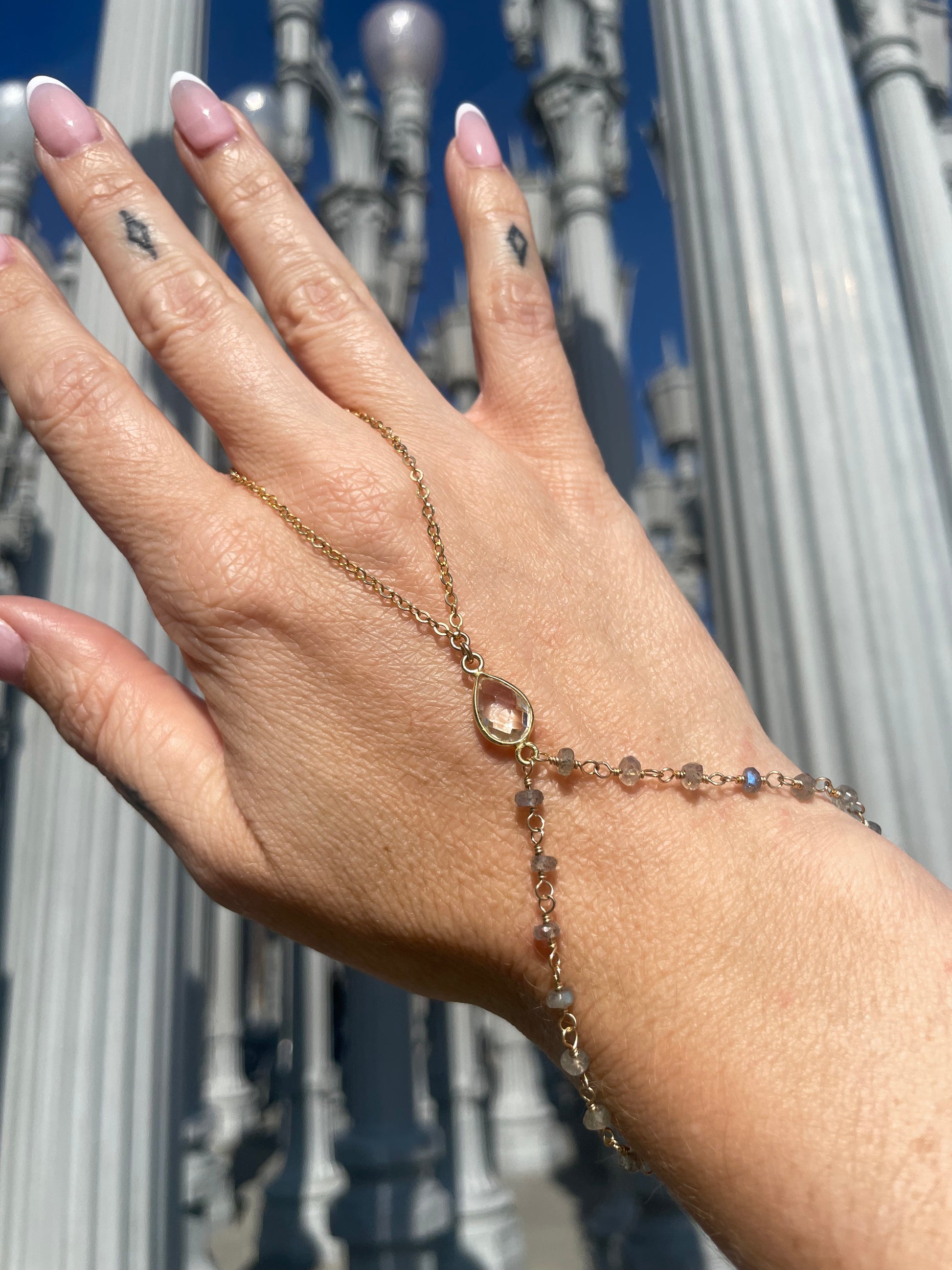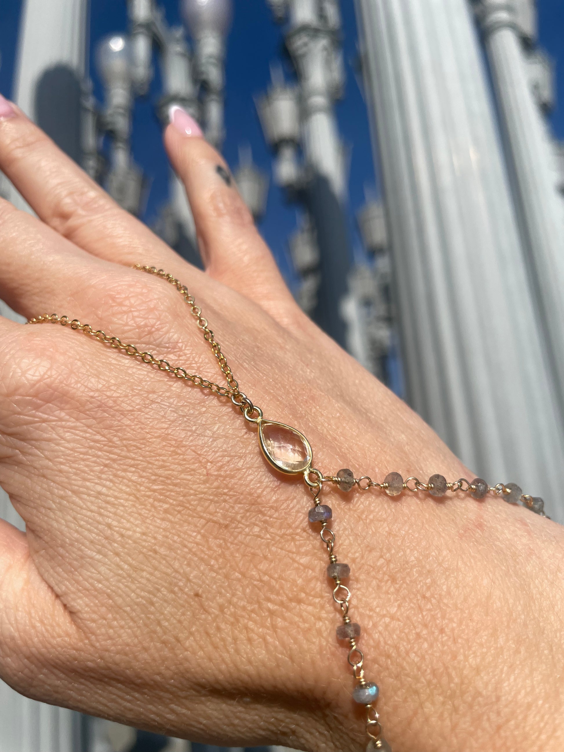 Crystal Quartz w/ Wrapped Labradorite Gold Hand Chain