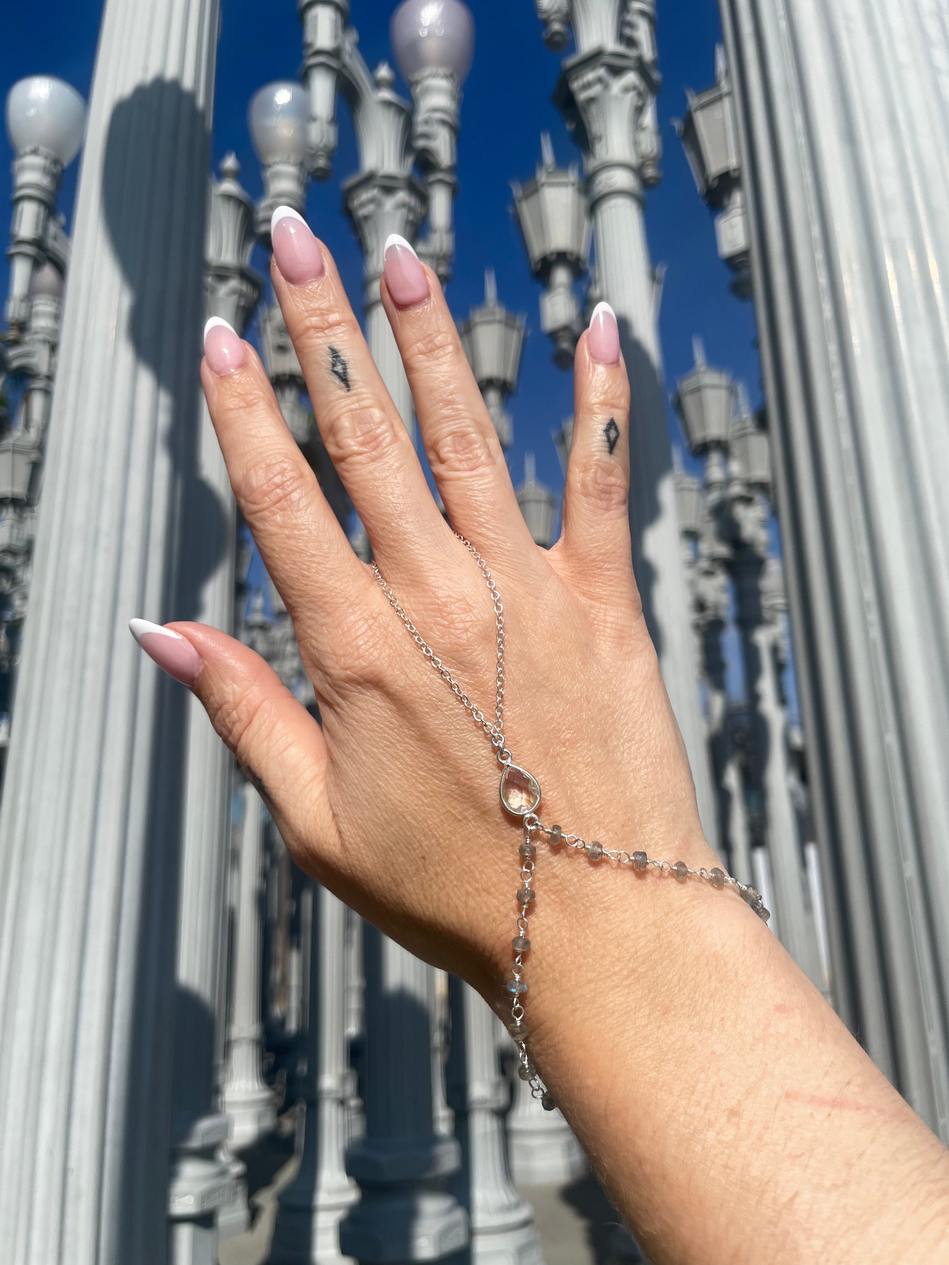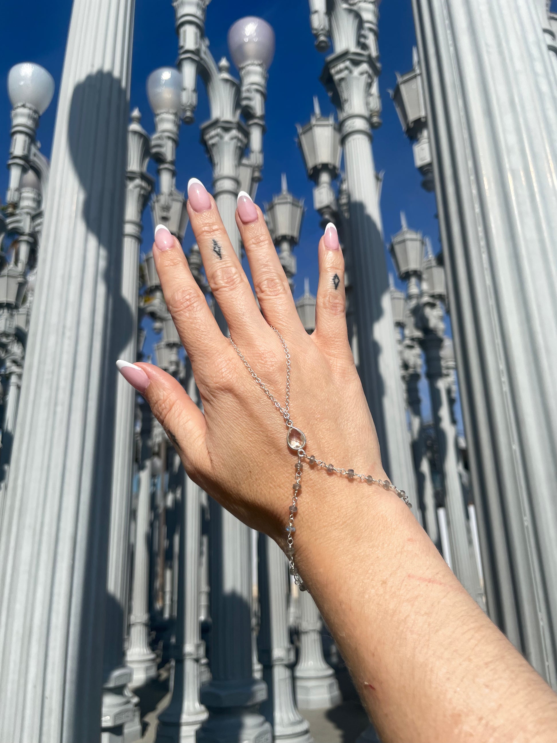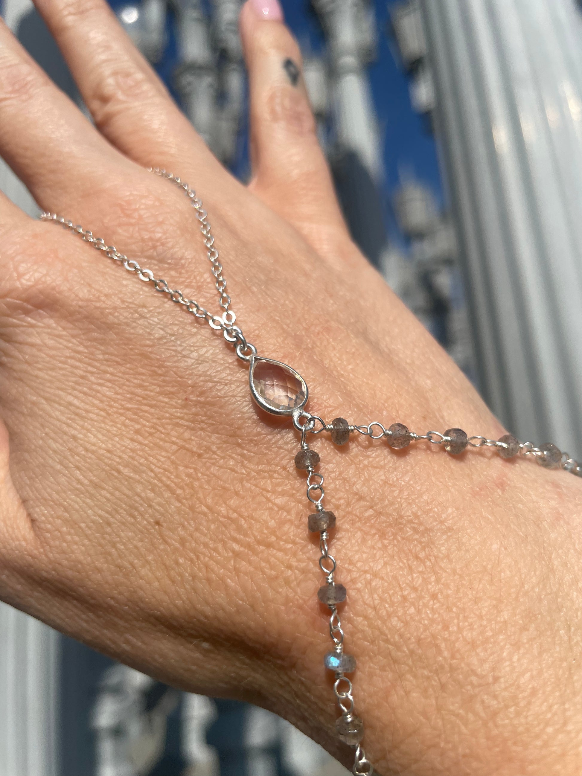 Crystal Quartz w/ Wrapped Labradorite Silver Hand Chain
