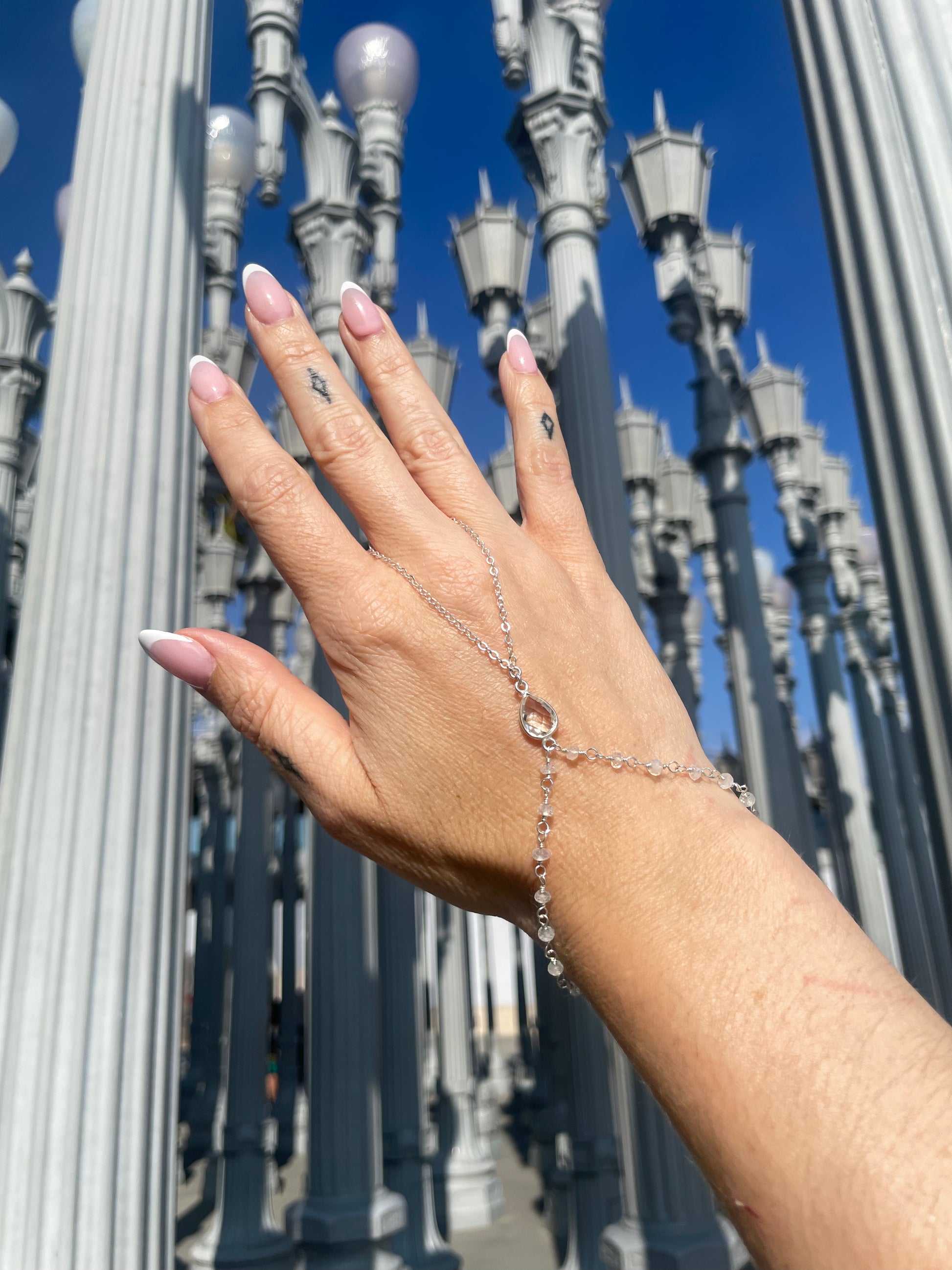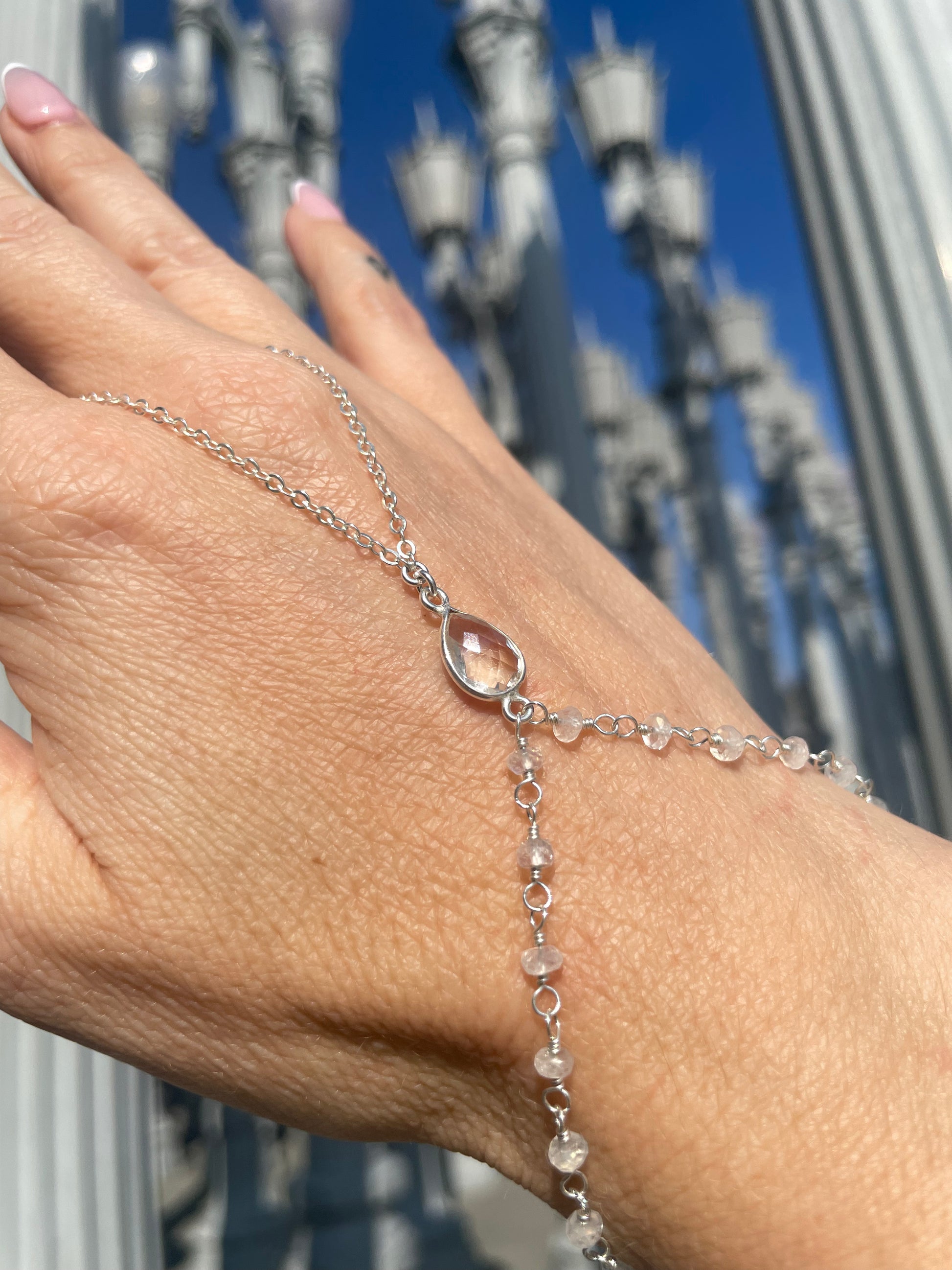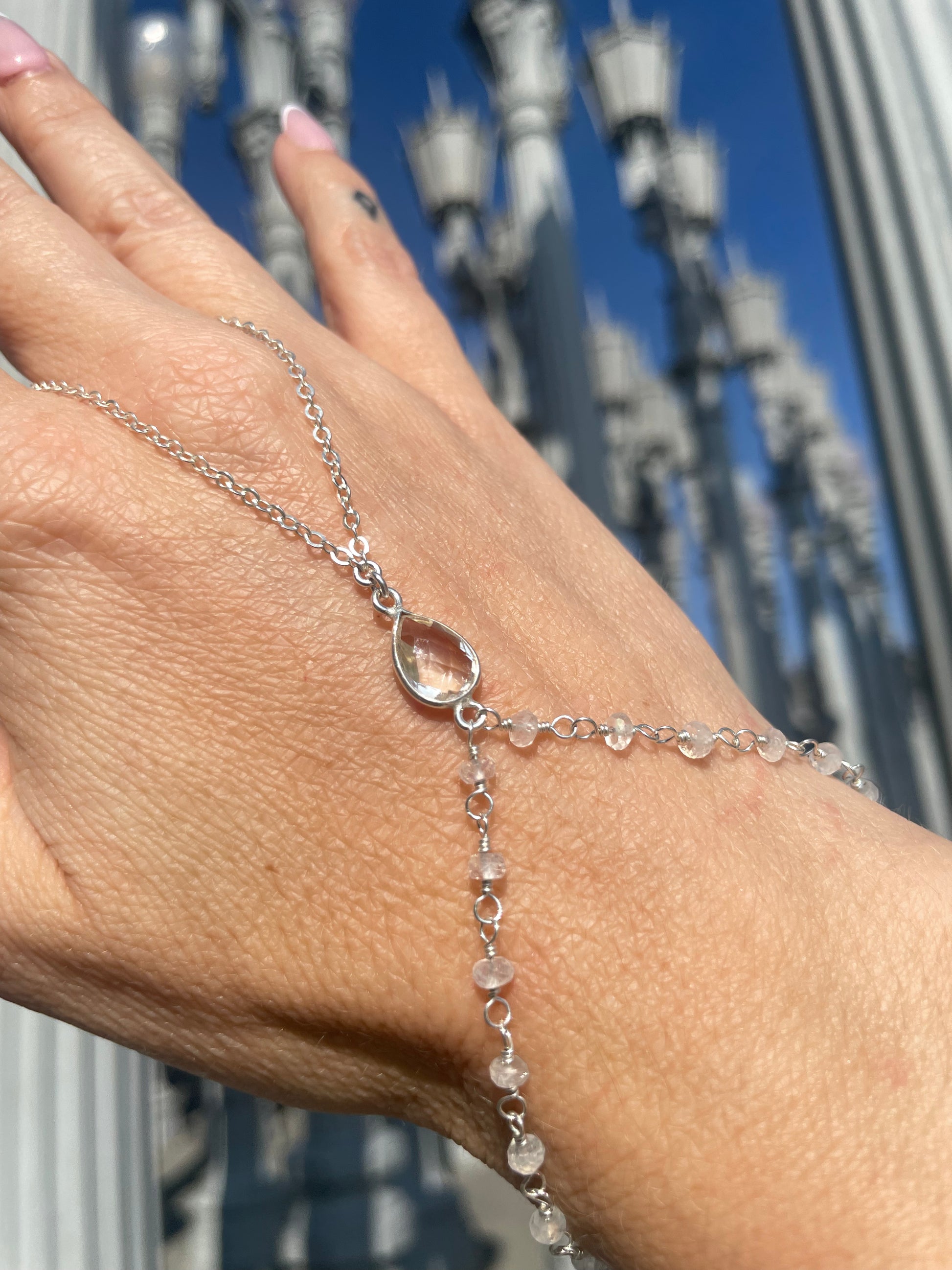 Crystal Quartz w/ Wrapped Moonstone Silver Hand Chain