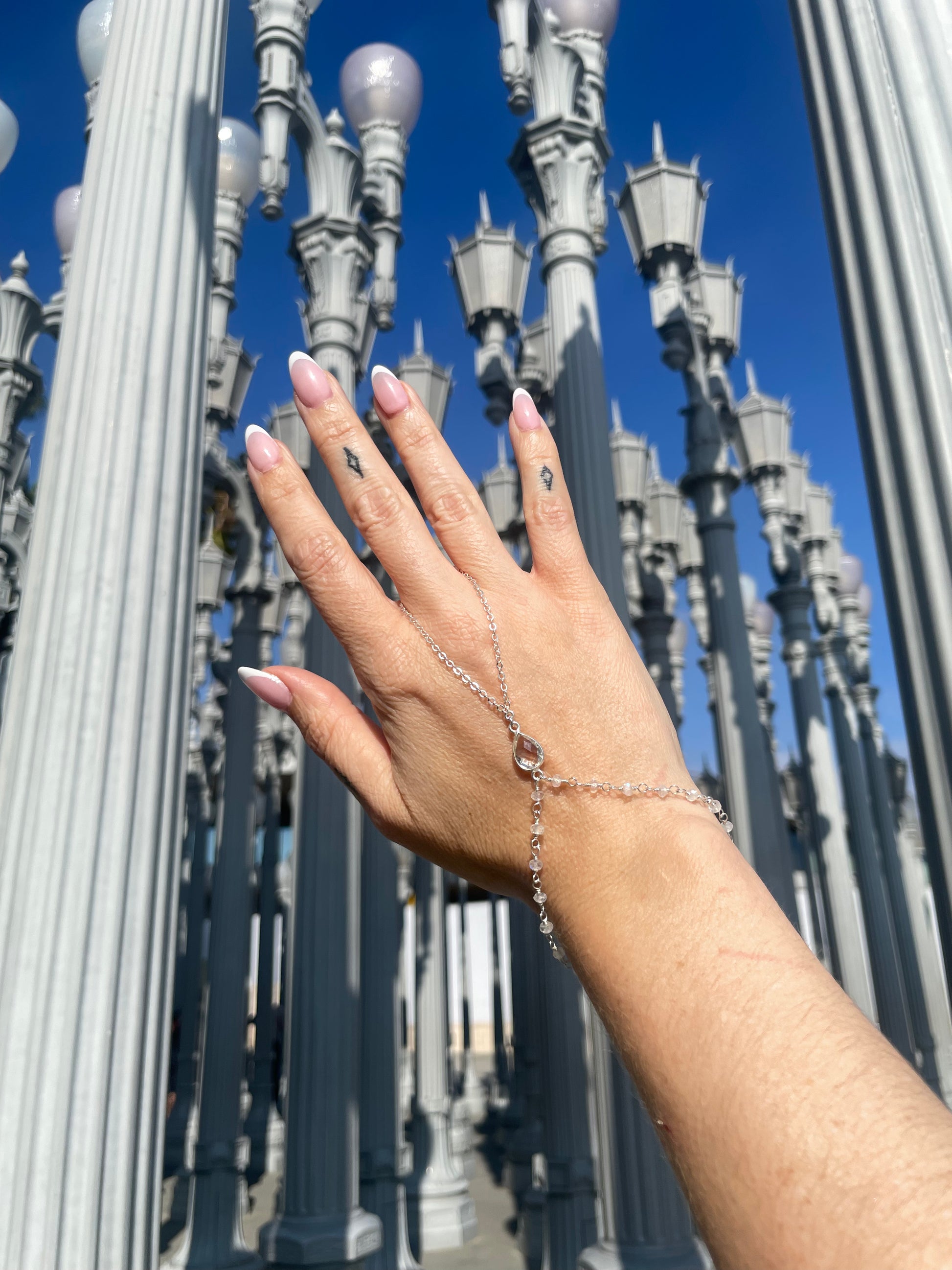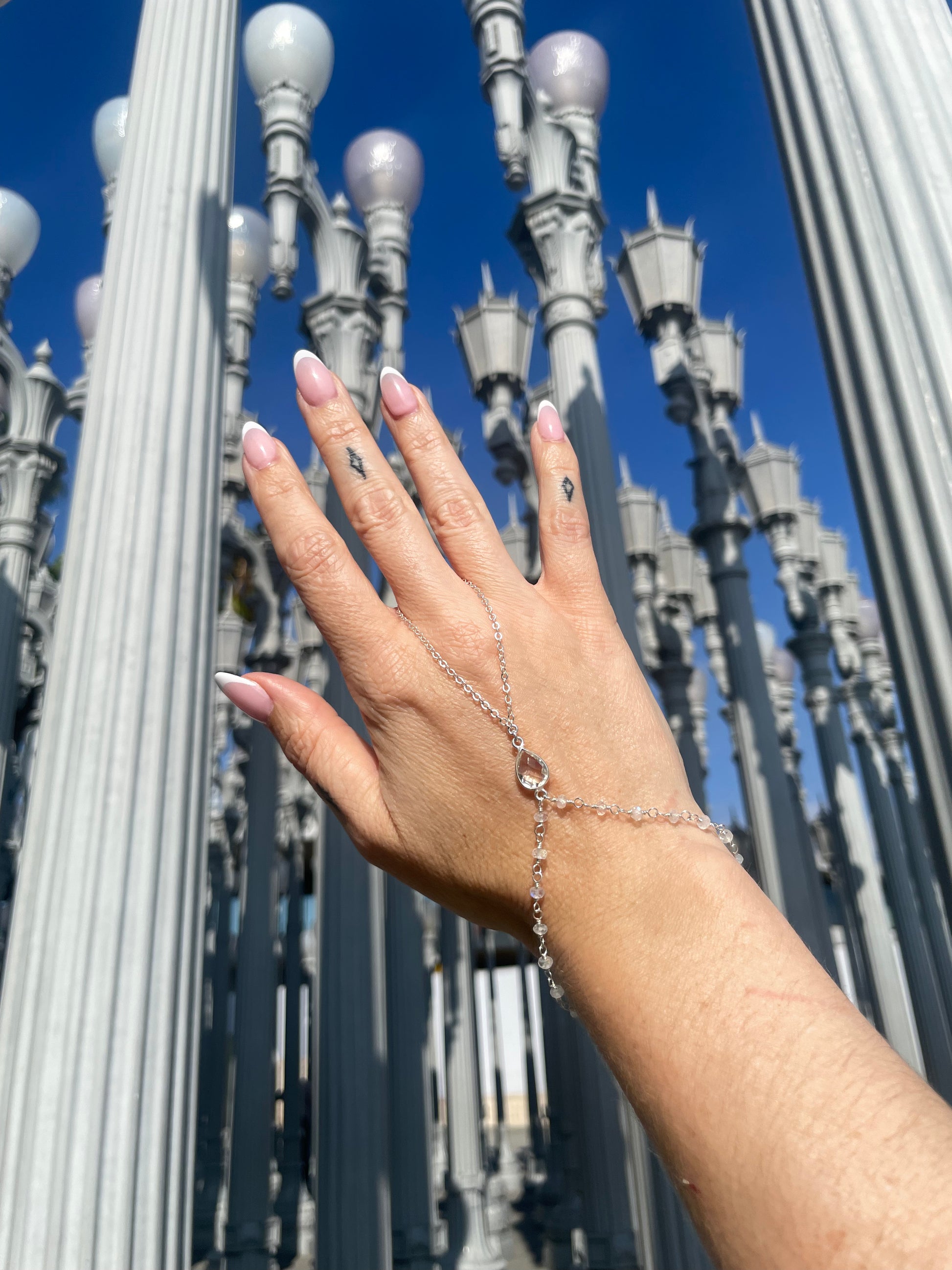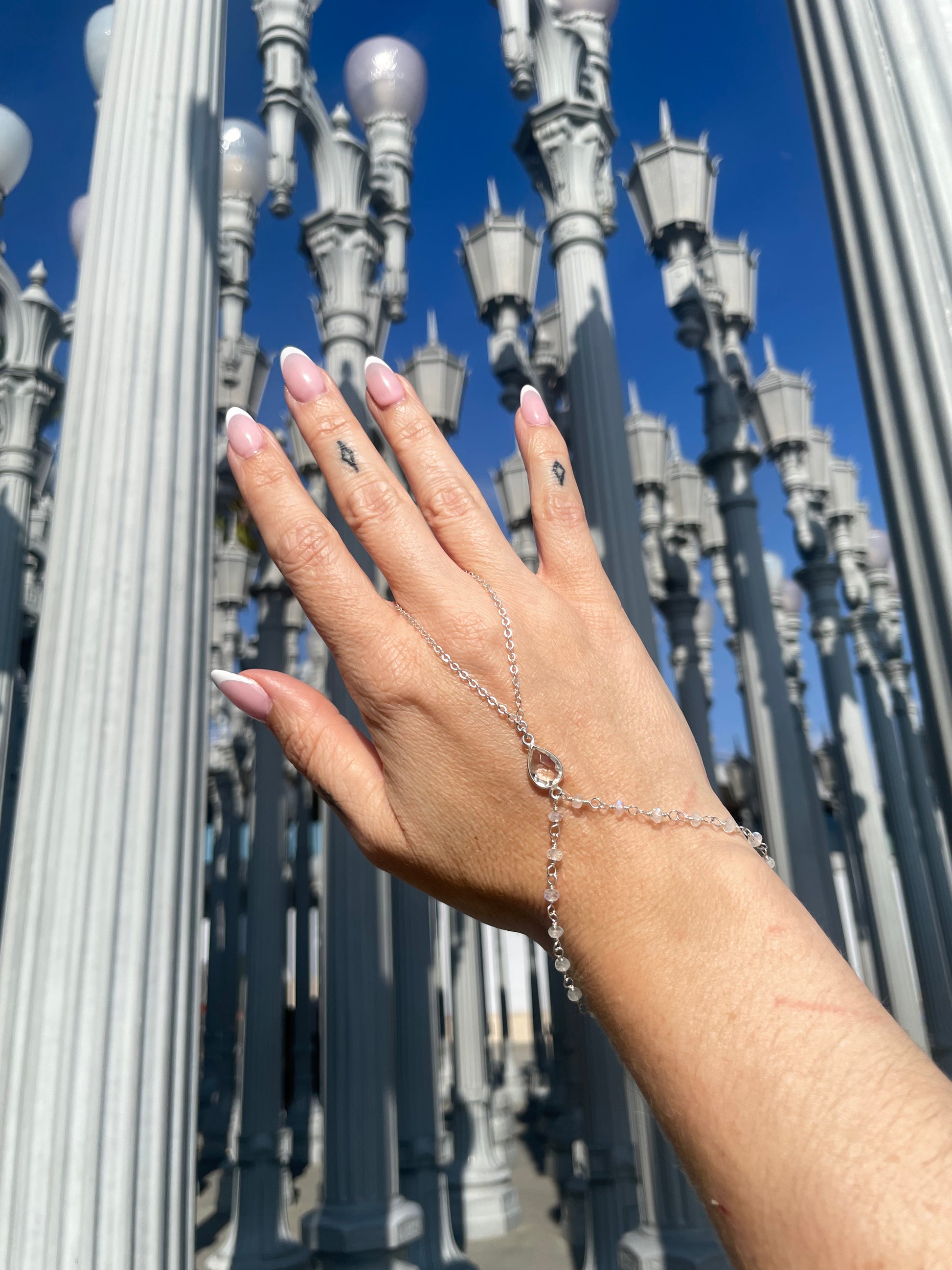 Crystal Quartz w/ Wrapped Moonstone Silver Hand Chain