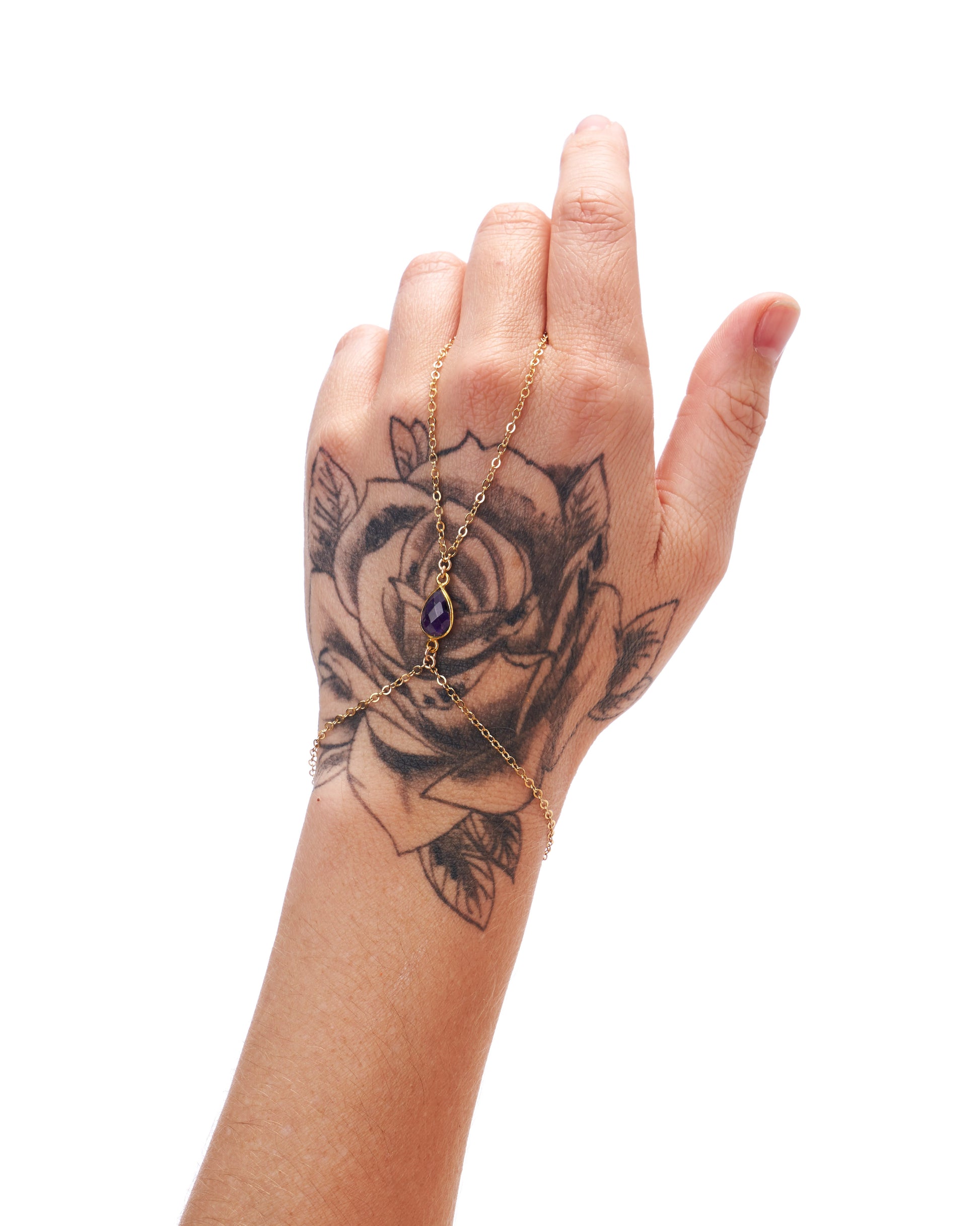 Amethyst faceted teardrop gemstone in a vermeil setting with gold filled chain and findings, finished with an engraved jewelry tag. Perfect for a classy touch to your every day life or a special occasion!