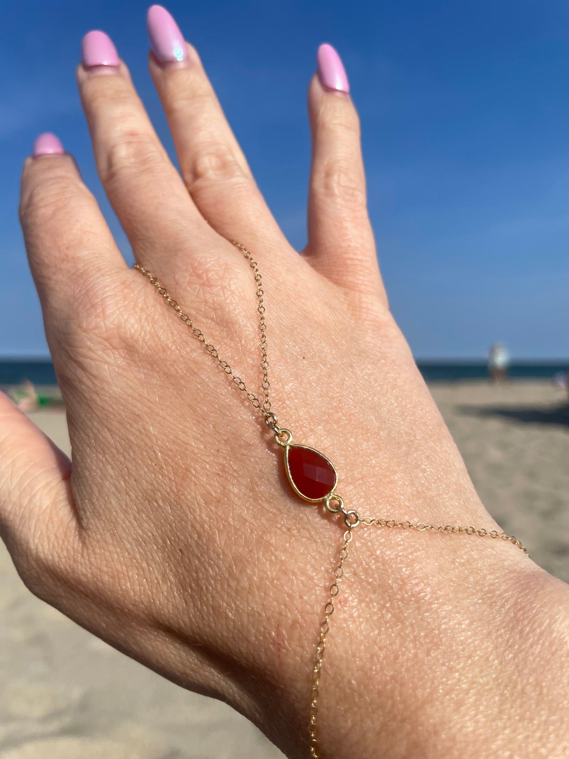 Carnelian faceted teardrop gemstone in a vermeil setting with gold filled chain and findings, finished with an engraved jewelry tag. Perfect for a classy touch to your every day life or a special occasion!