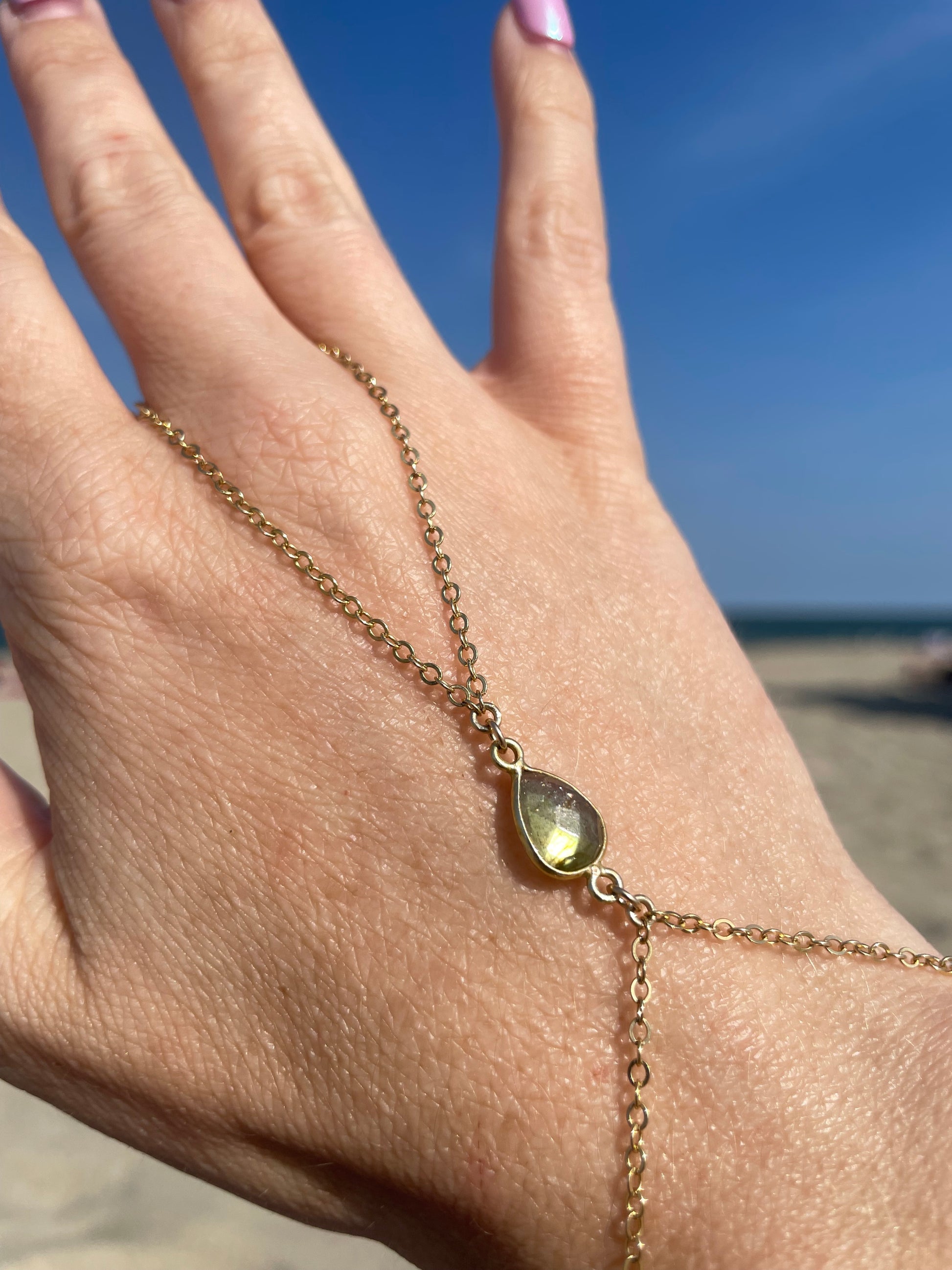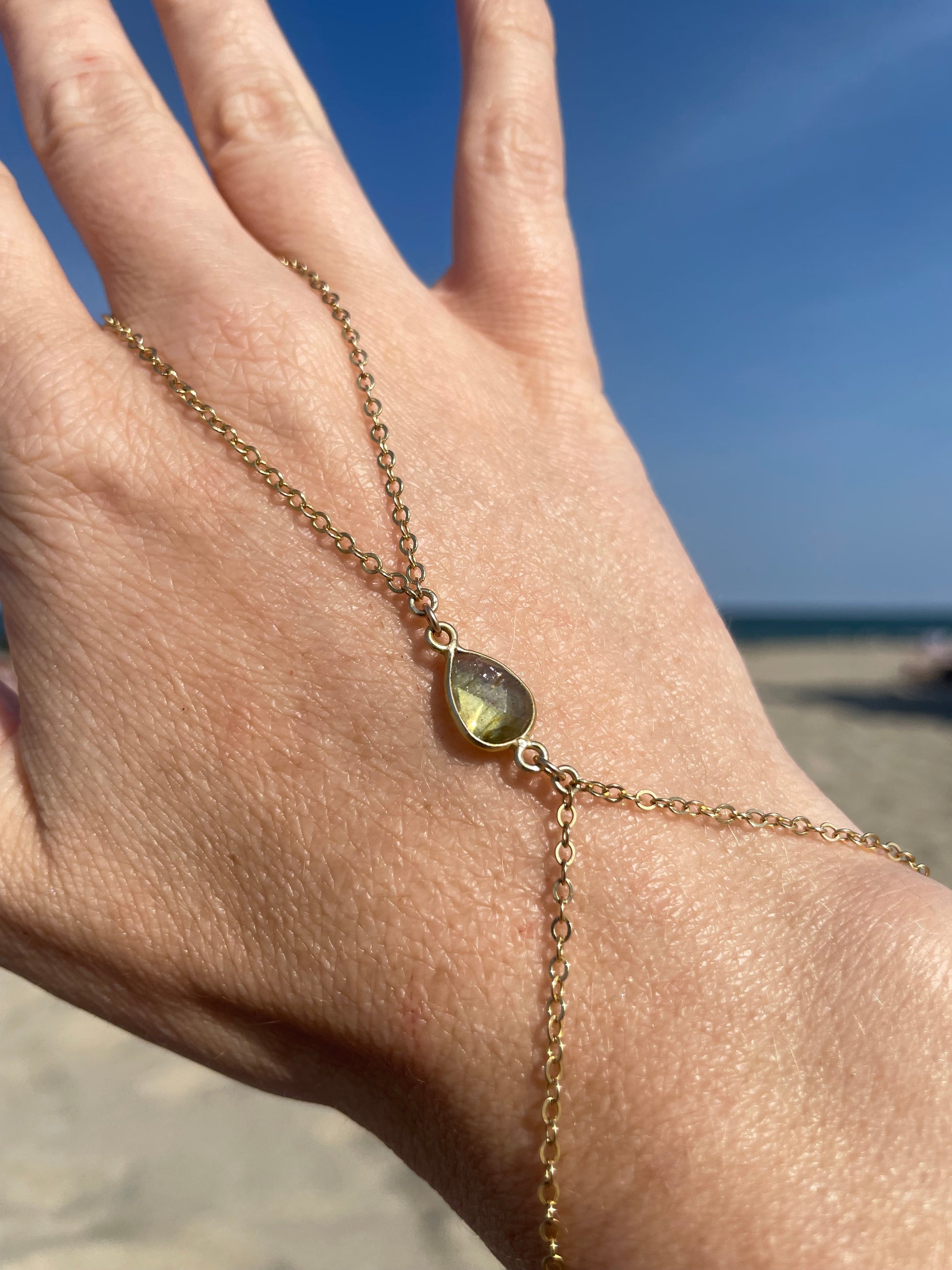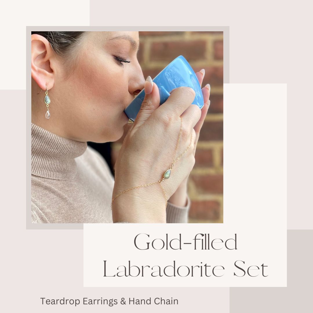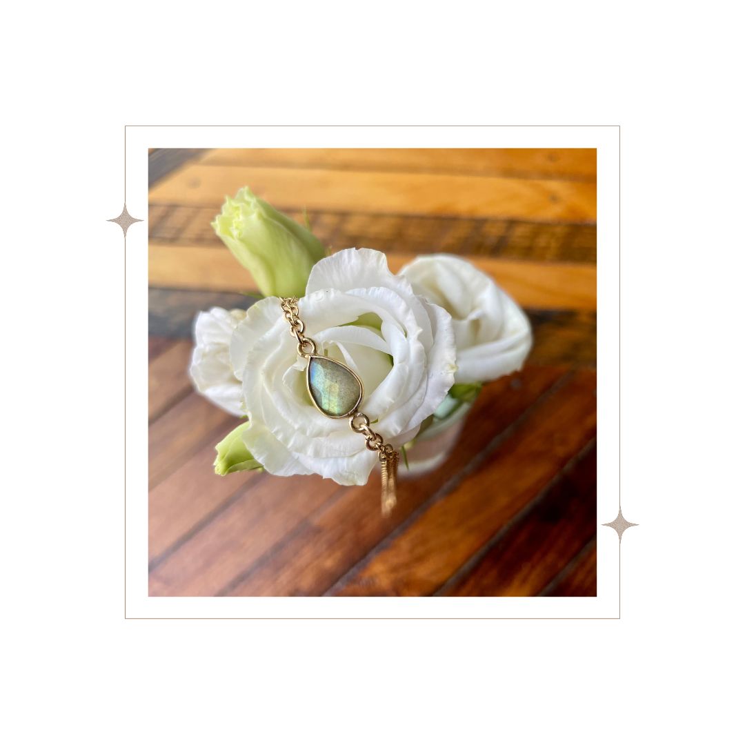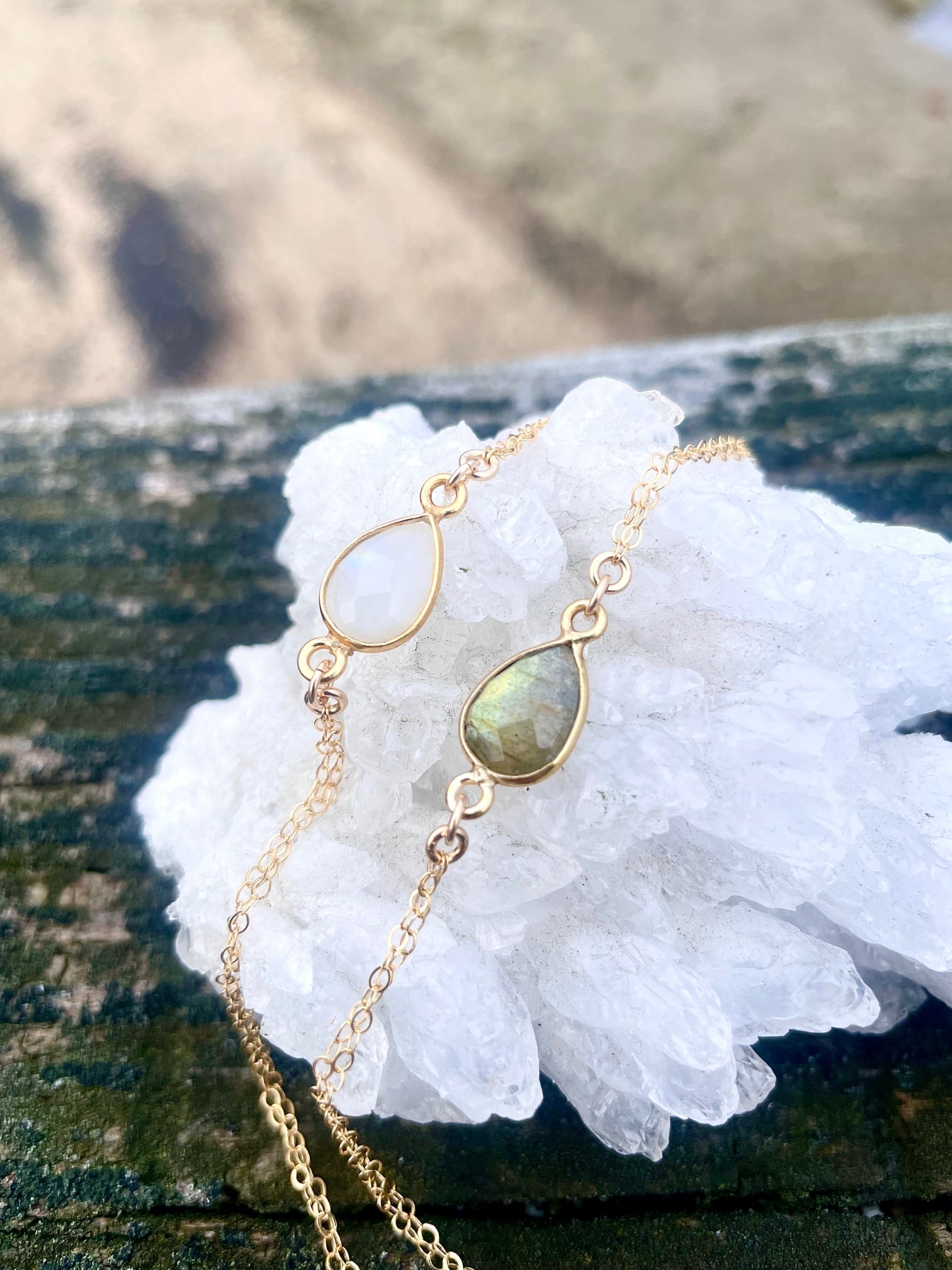 Labradorite faceted teardrop gemstone in a vermeil setting, gold-fiilled chain and findings, finished with an engraved jewelry tag. Perfect for a classy touch to your every day life or a special occasion!