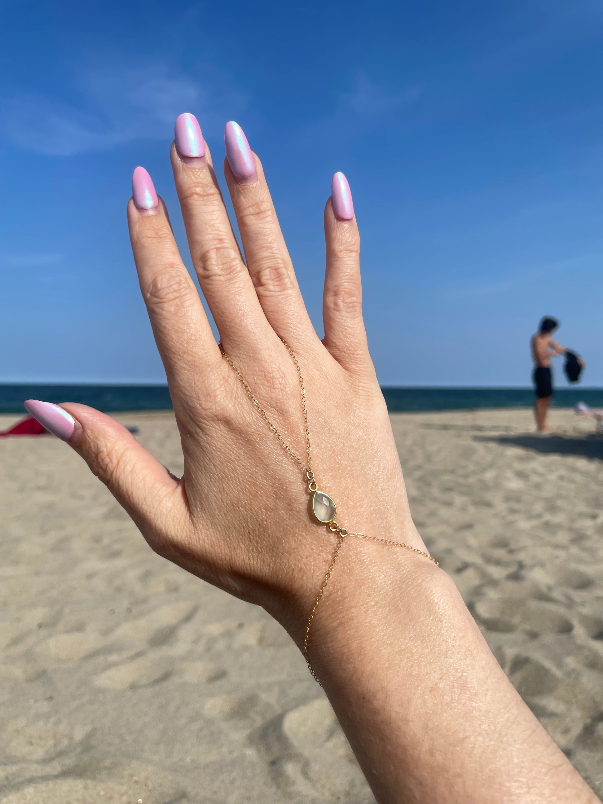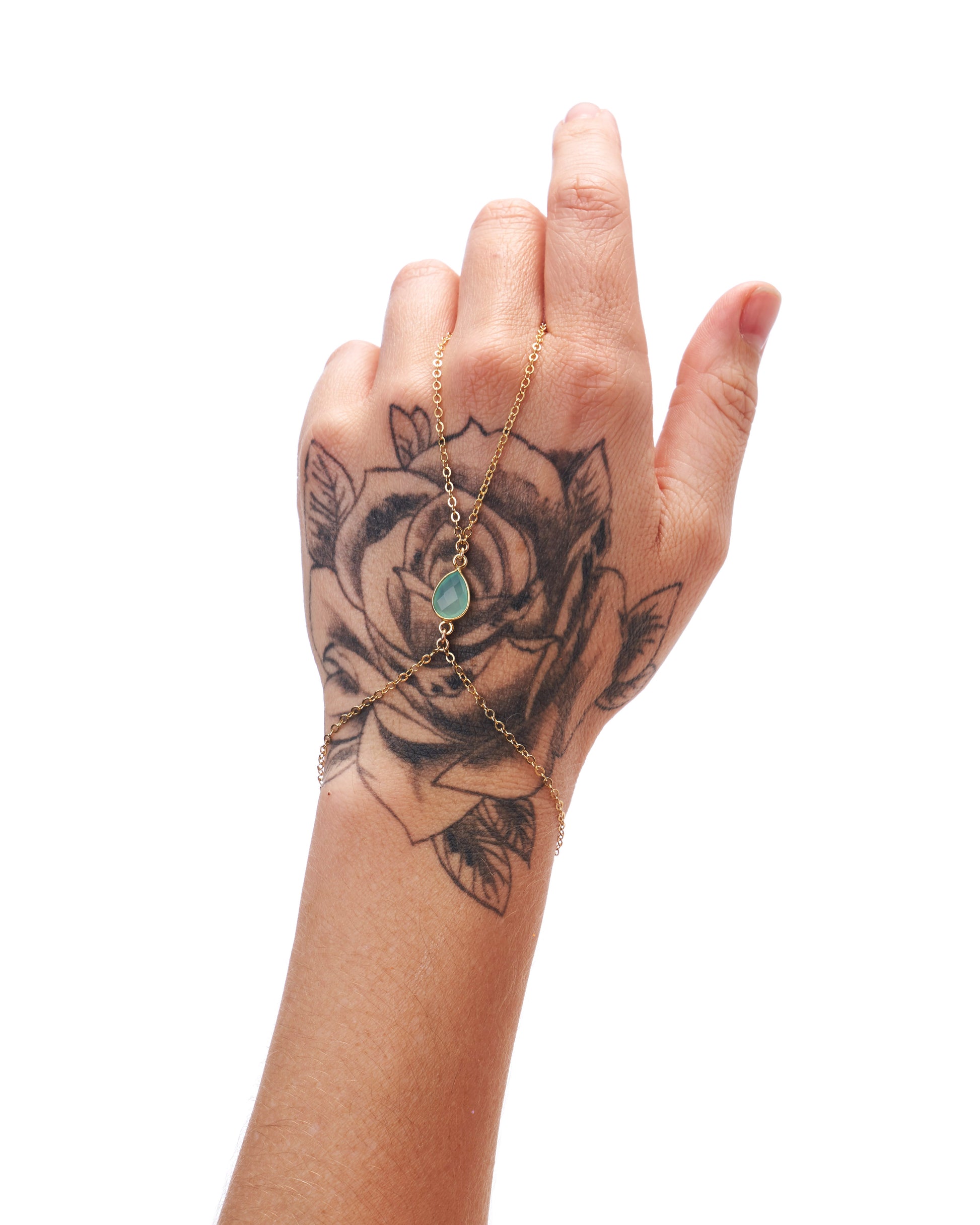 Sea Blue Chalcedony faceted teardrop gemstone in a vermeil setting with gold filled chain and findings, finished with an engraved jewelry tag. Perfect for a classy touch to your every day life or a special occasion!