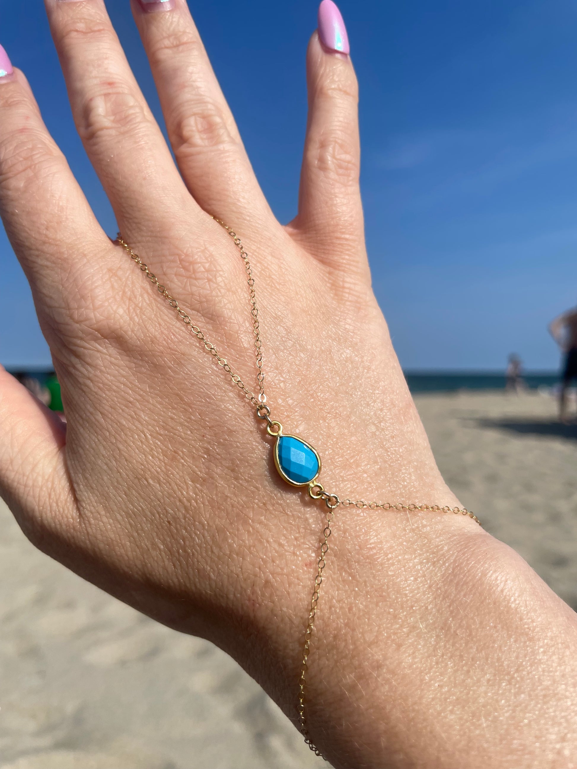 Turquoise faceted teardrop gemstone in a vermeil setting with gold filled chain and findings, finished with an engraved jewelry tag. Perfect for a classy touch to your every day life or a special occasion!