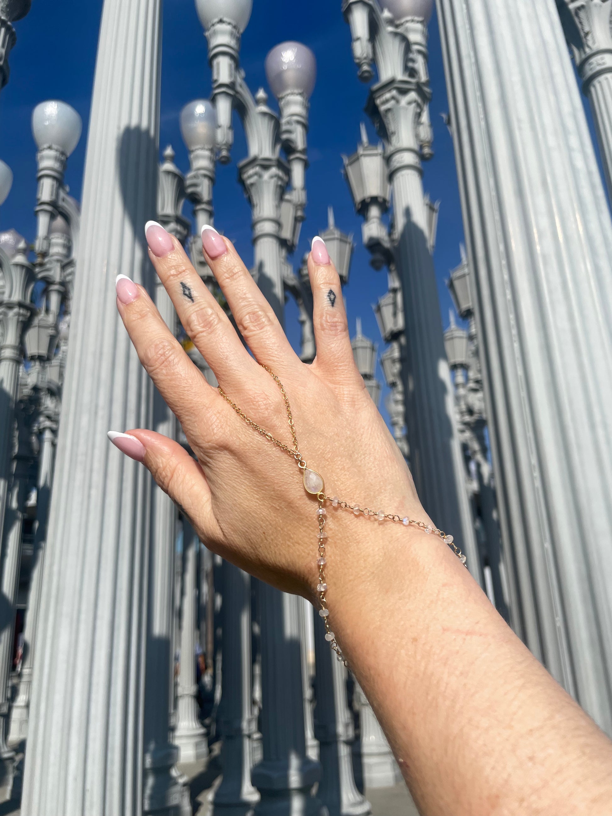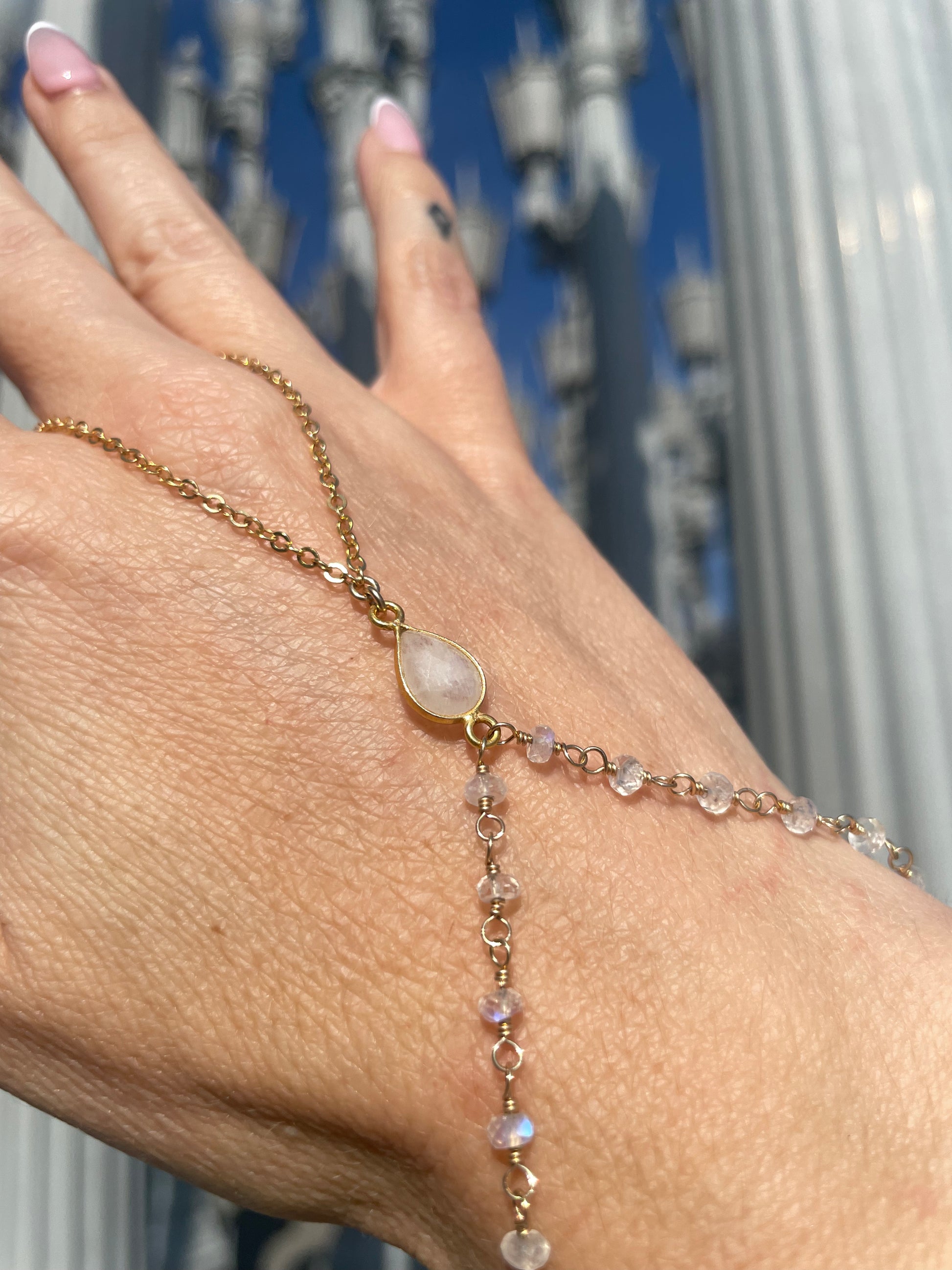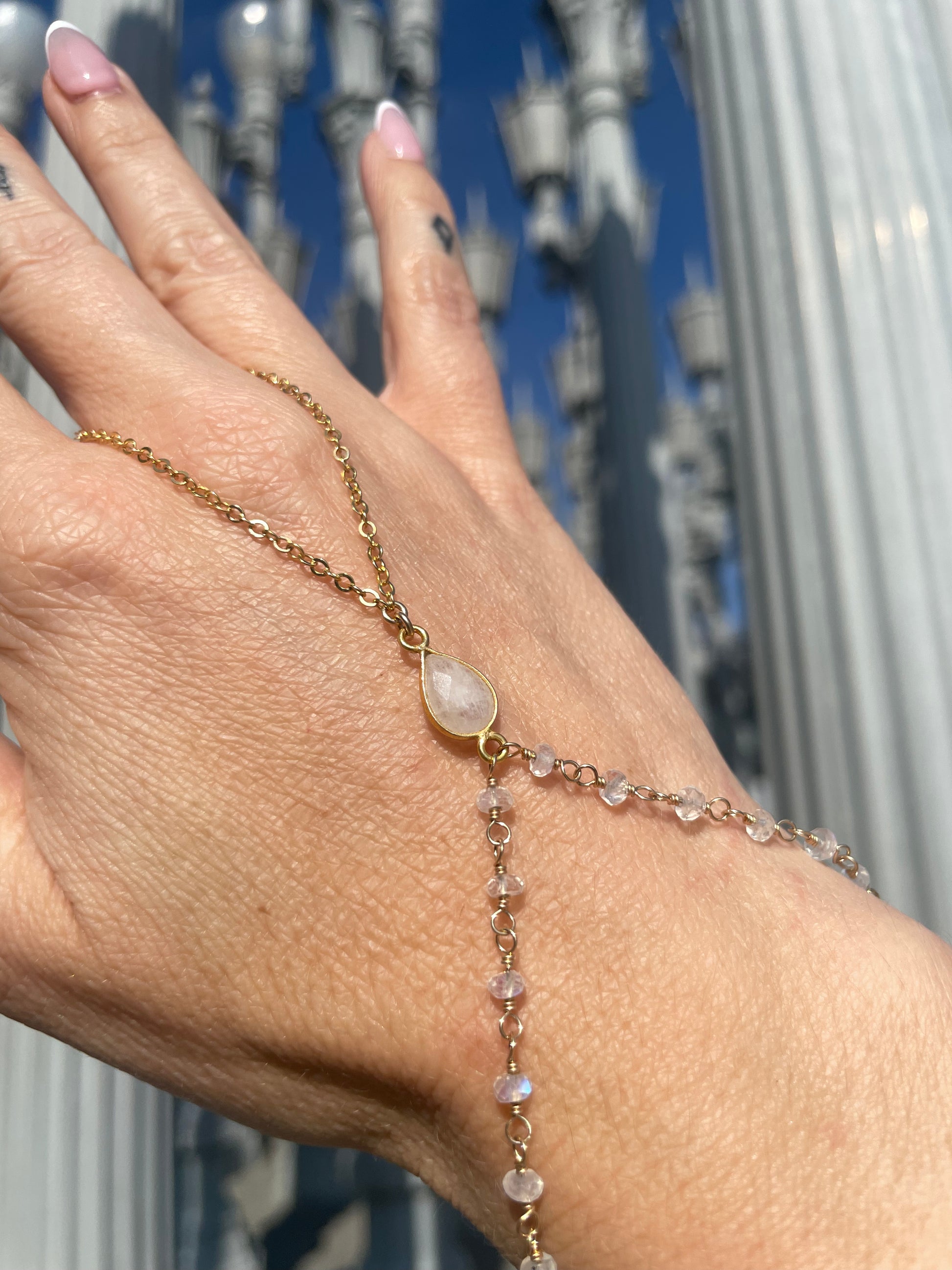 Moonstone w/ Wrapped Moonstone Gold Hand Chain