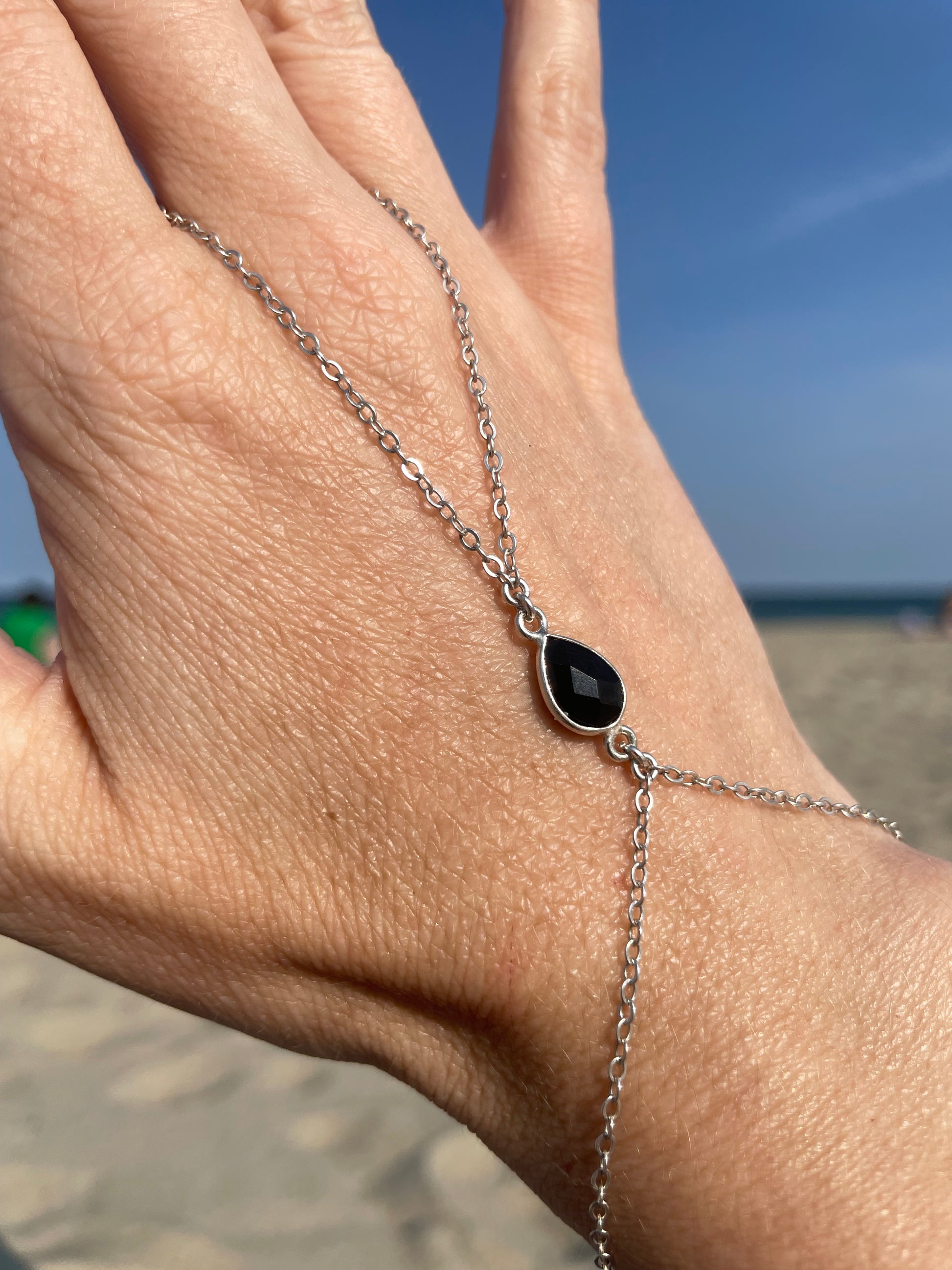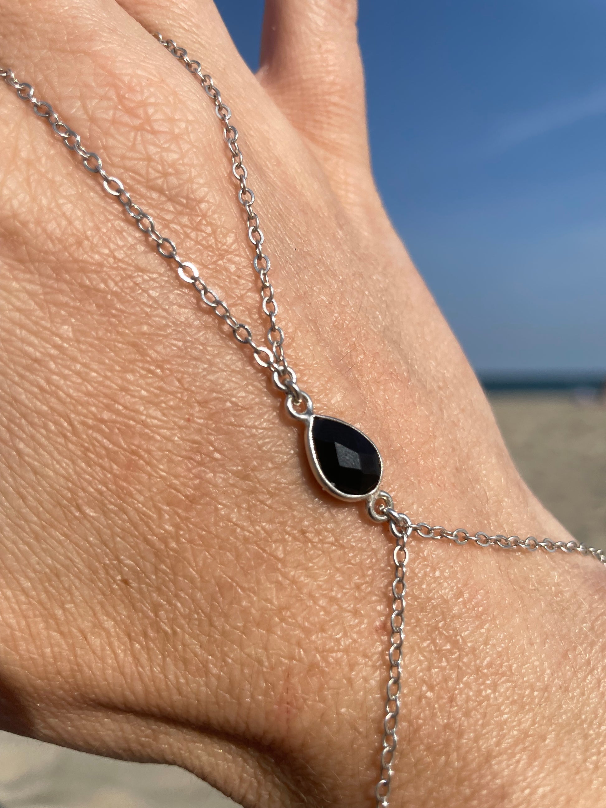 Black Spinel faceted teardrop gemstone in a sterling silver setting, sterling silver chain and findings, finished with an engraved jewelry tag. Perfect for a classy touch to your every day life or a special occasion!