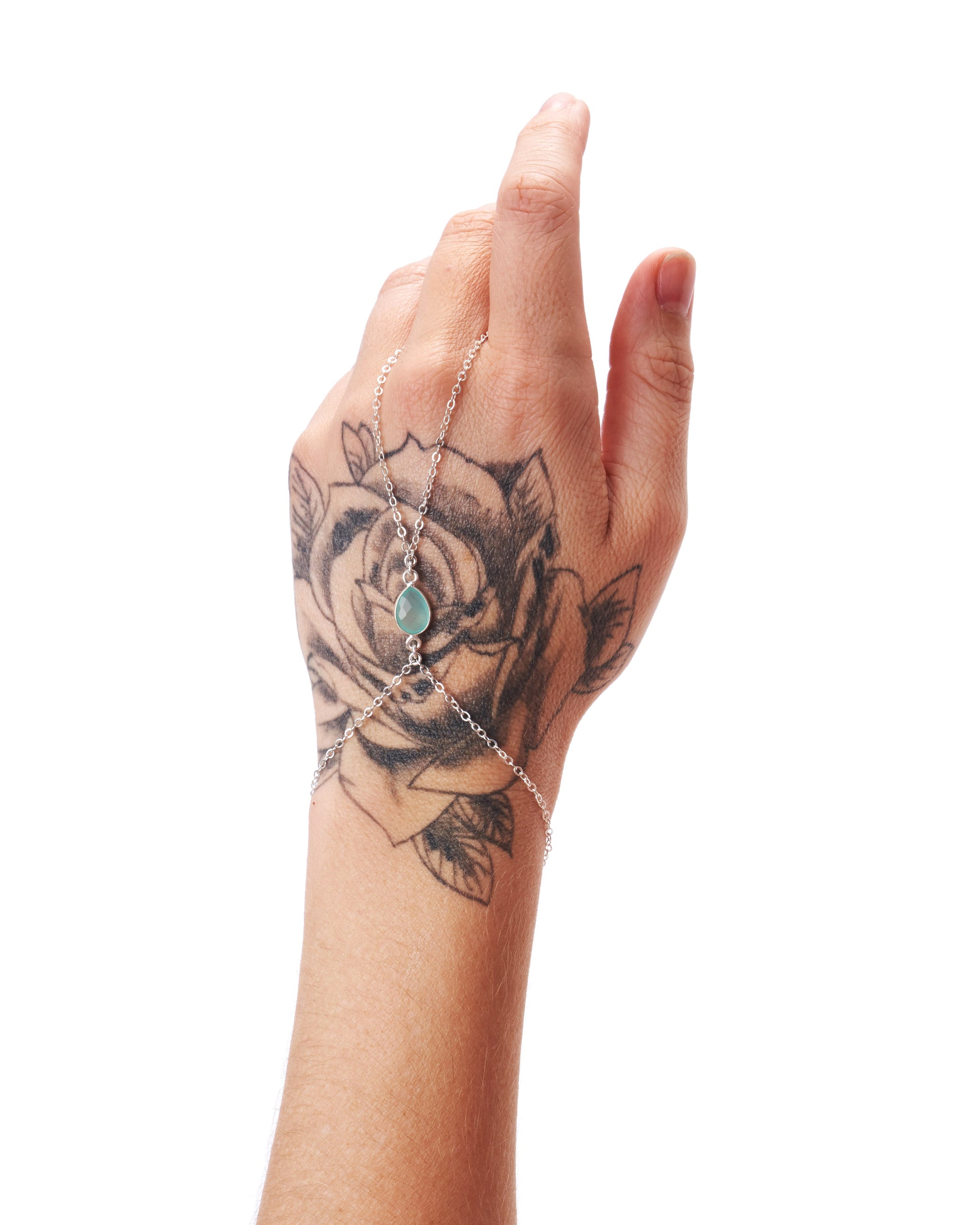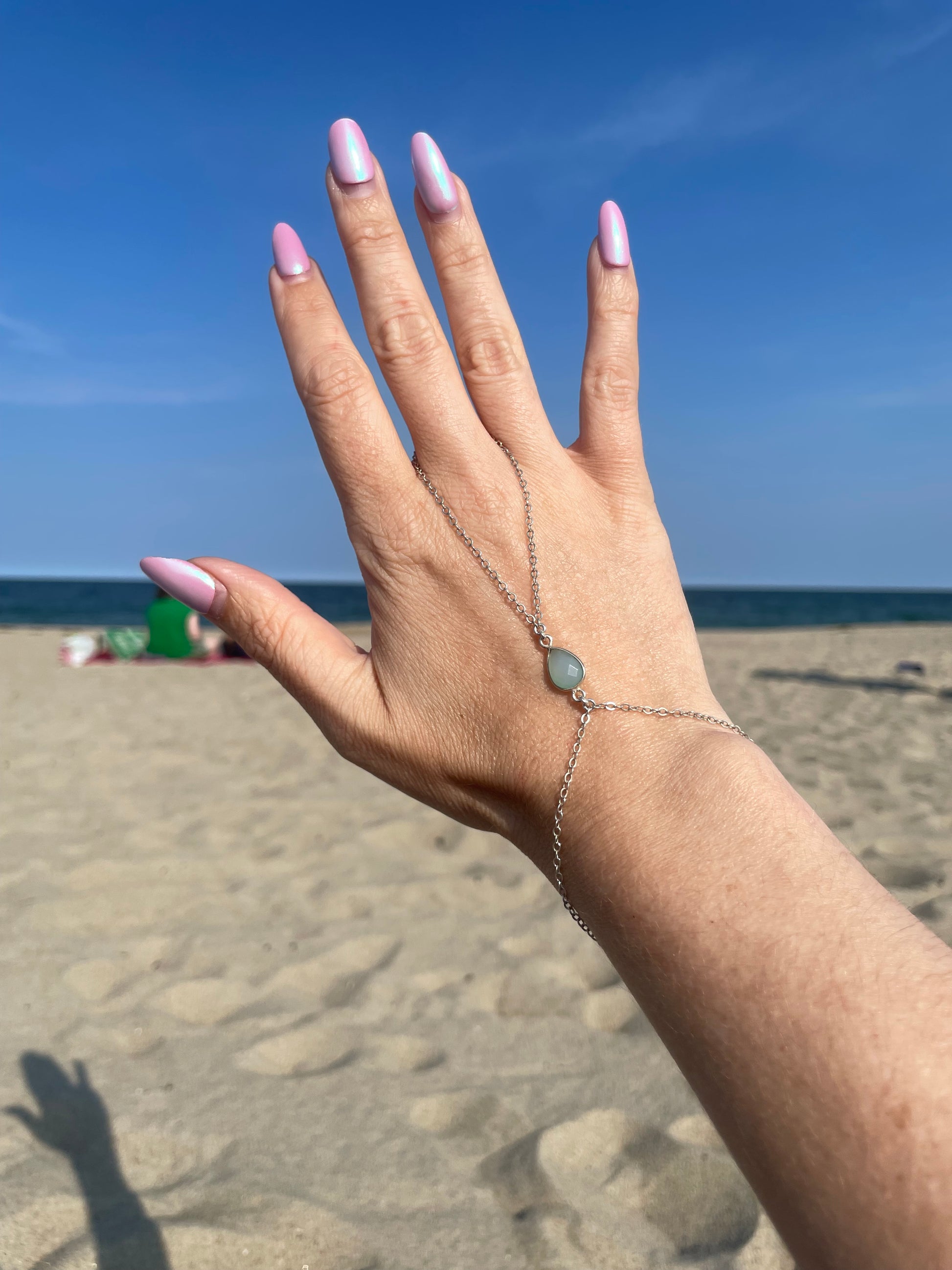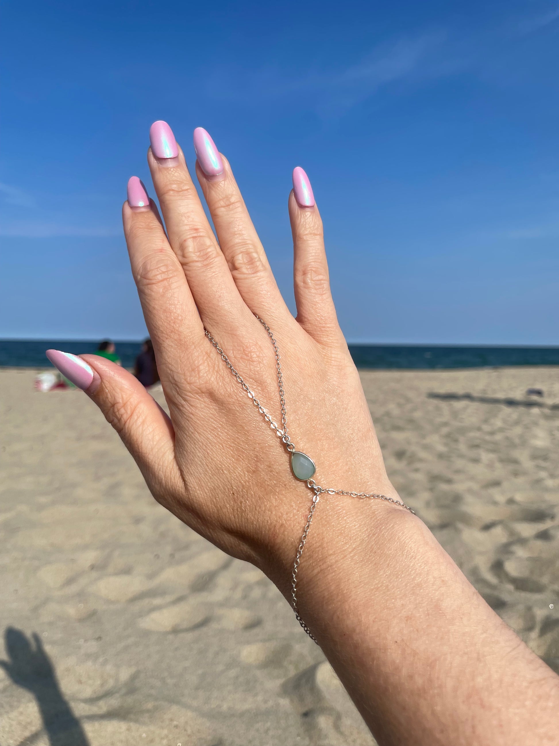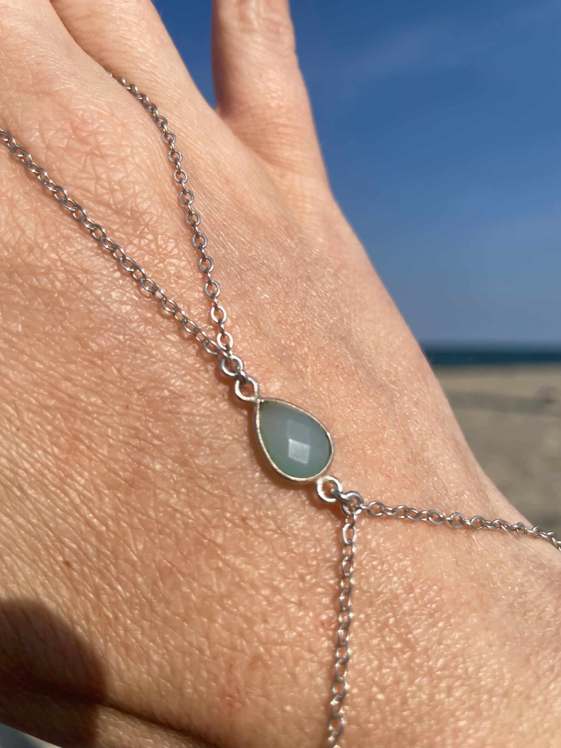 Sea Blue Chalcedony Silver Hand Chain