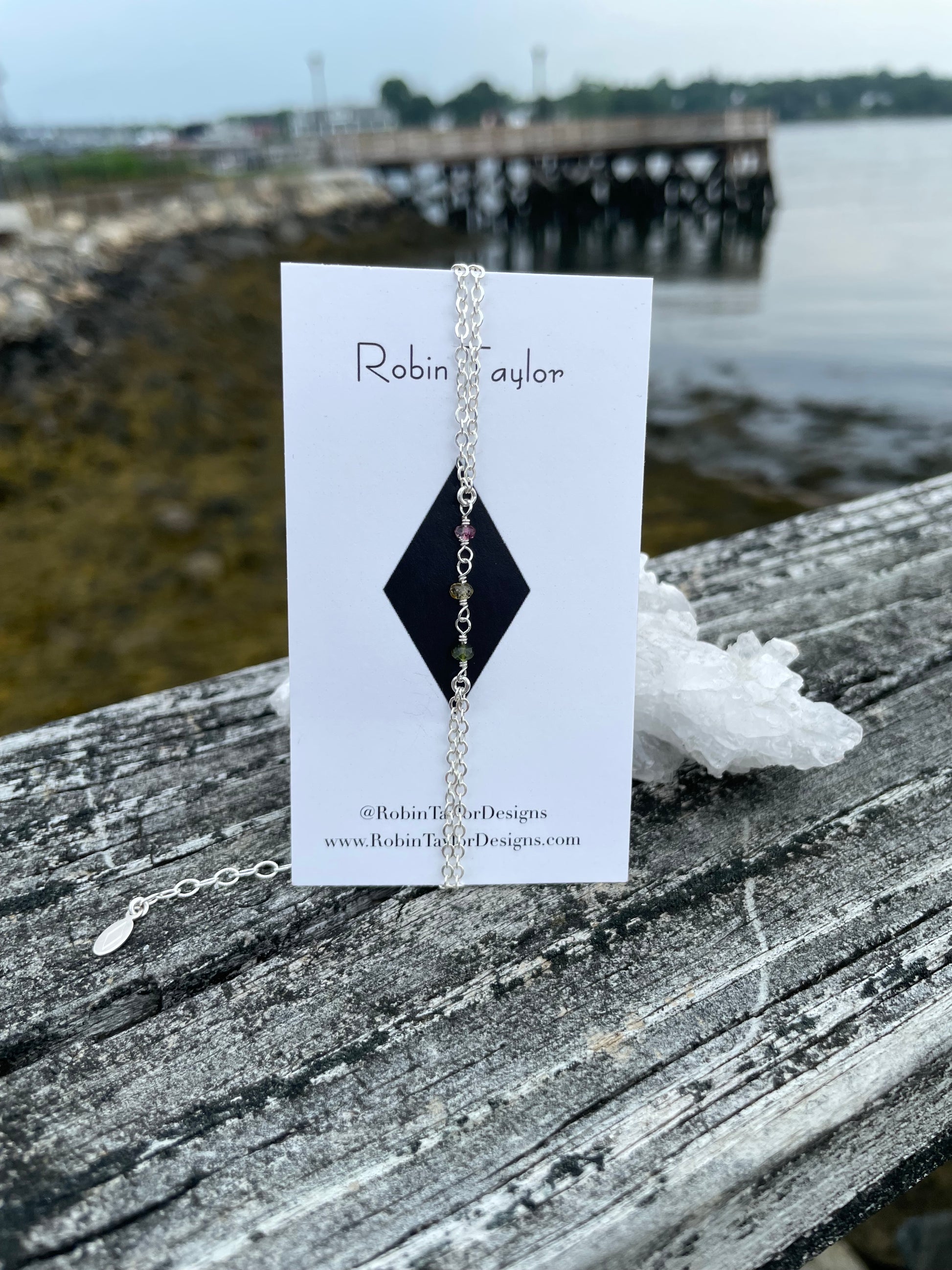 Three 4mm watermelon tourmaline faceted stones hand wire wrapped with sterling silver wire and finished with sterling silver chain & findings. The tourmaline adds a pop of color to the refreshing feel of the sterling silver.